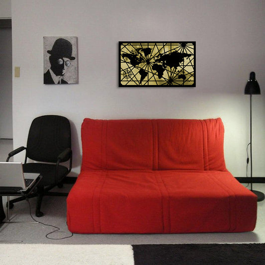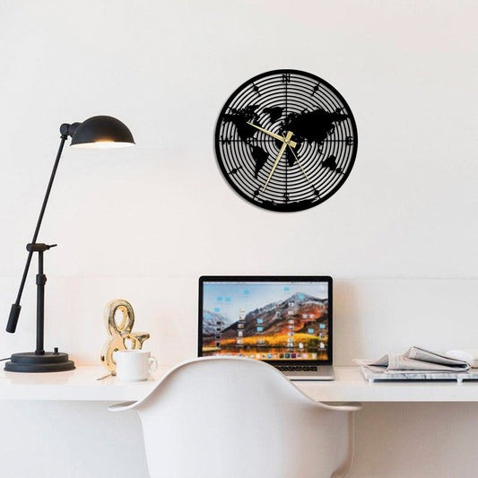 Dünya Haritası Metal Duvar Saati Merror