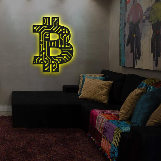 Bitcoin Metal Ledli Duvar Tablosu Aydınlatma