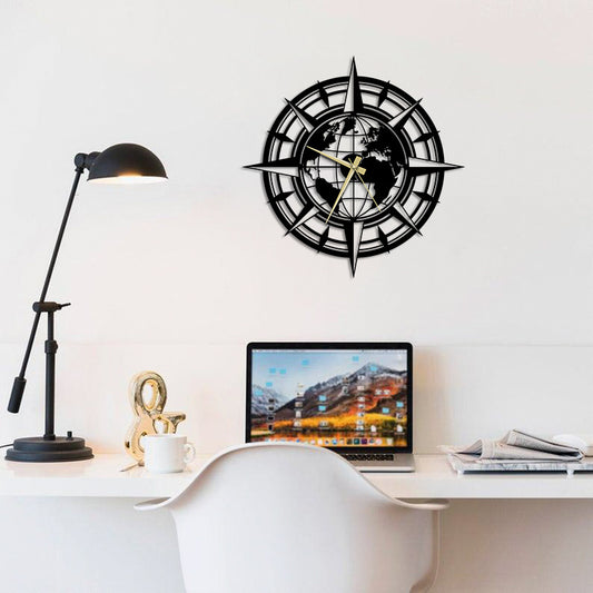 Pusula Dünya Haritası V2 Metal Duvar Saati